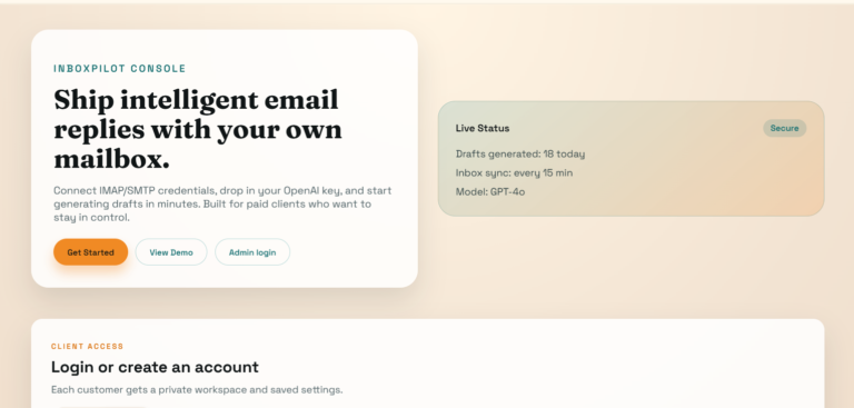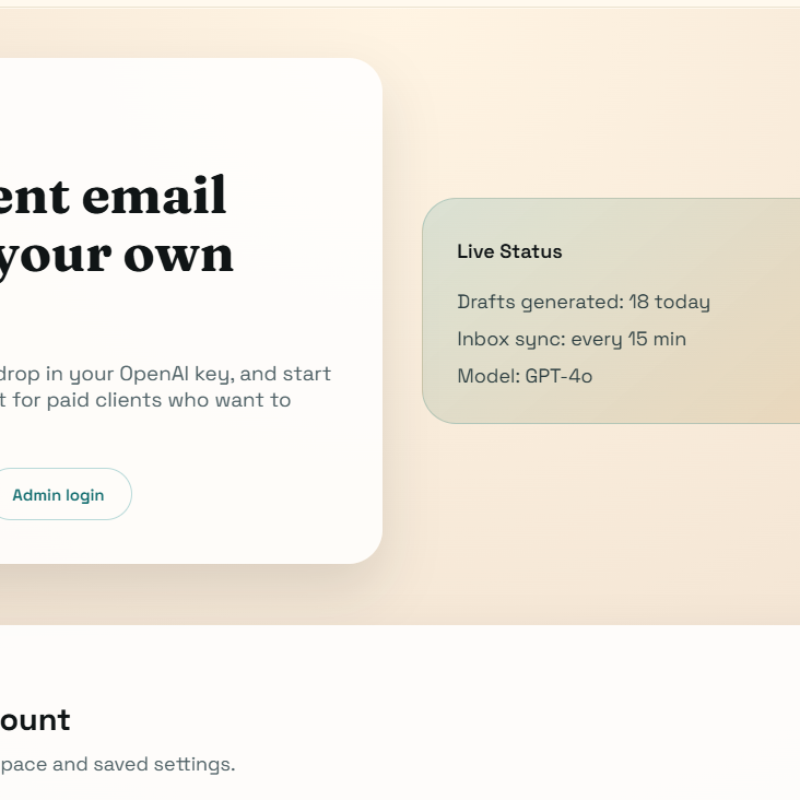 Built entirely on the MERN stack, the application features a clean React.js frontend where users can easily configure their AI settings and review the generated drafts. The backend utilizes Node.js and Express to securely handle email server connections and execute the complex AI filtering and drafting logic. MongoDB provides a reliable database solution to safely store user preferences, custom AI training parameters, and draft histories.