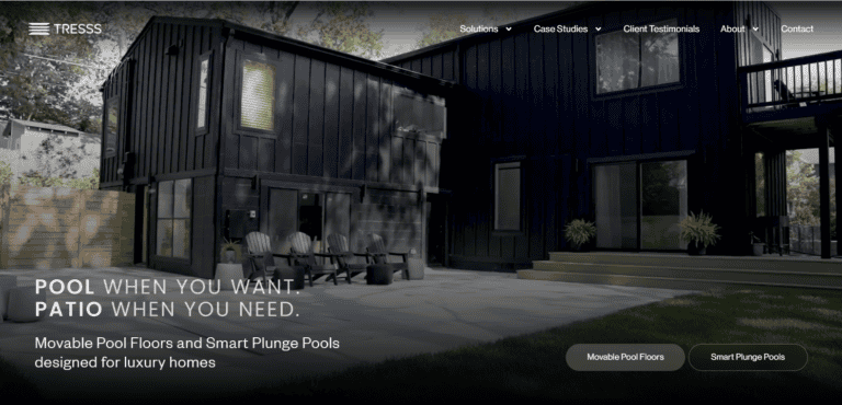 Tresss website is a modern website designed and developed to showcase an innovative movable plunge pool solution. The platform highlights a unique concept where a floor seamlessly transforms into a swimming pool and reverts back when needed. Built with a focus on user experience, the website presents the product’s functionality, design, and benefits in a visually engaging and intuitive manner.