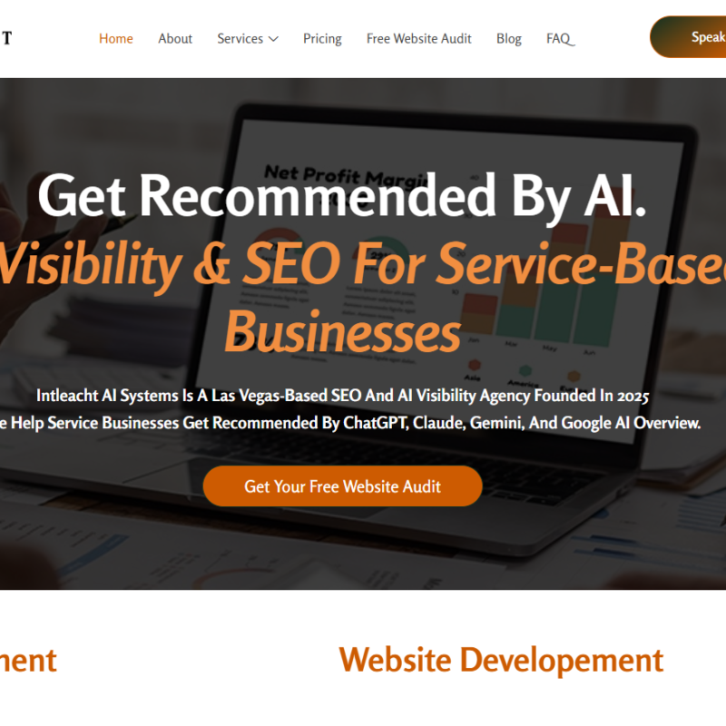 Developed and delivered a modern, performance-driven website for Intleacht AI Systems, a cutting-edge agency specializing in SEO and AI visibility optimization for service-based businesses. The website is designed to clearly communicate the company’s unique value proposition—helping businesses rank higher on search engines while also being recommended by AI platforms like ChatGPT and Google AI Overview.